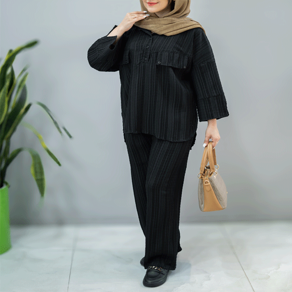 جلوی یقه کار با دکمه باز و بسته میشود